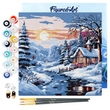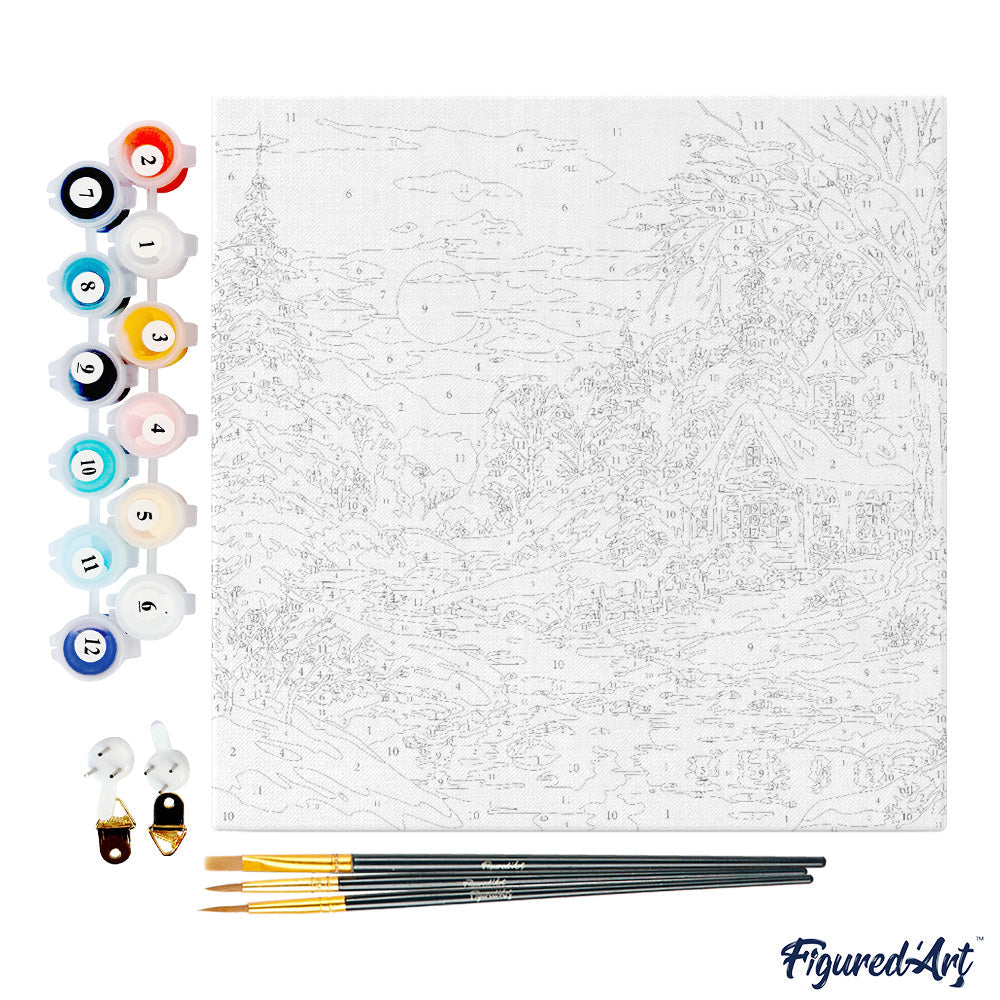 Mini Paint by numbers Lovely Winter Cottage 20x20cm already framed