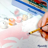 This mini paint by numbers in a 20x20cm format with a wooden frame contains everything necessary to create your masterpiece: