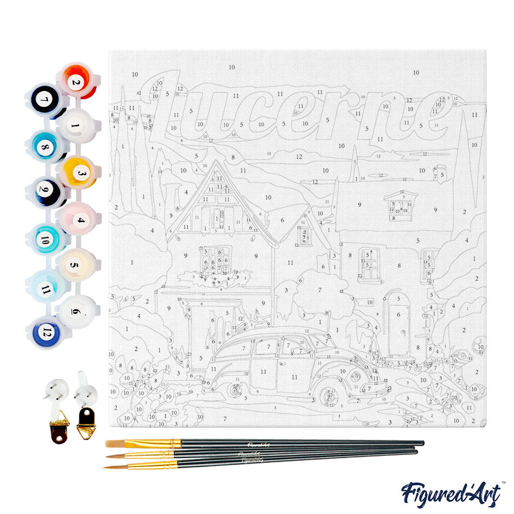 Model: Mini Paint by numbers Travel Poster Lucerne 20x20cm already framed