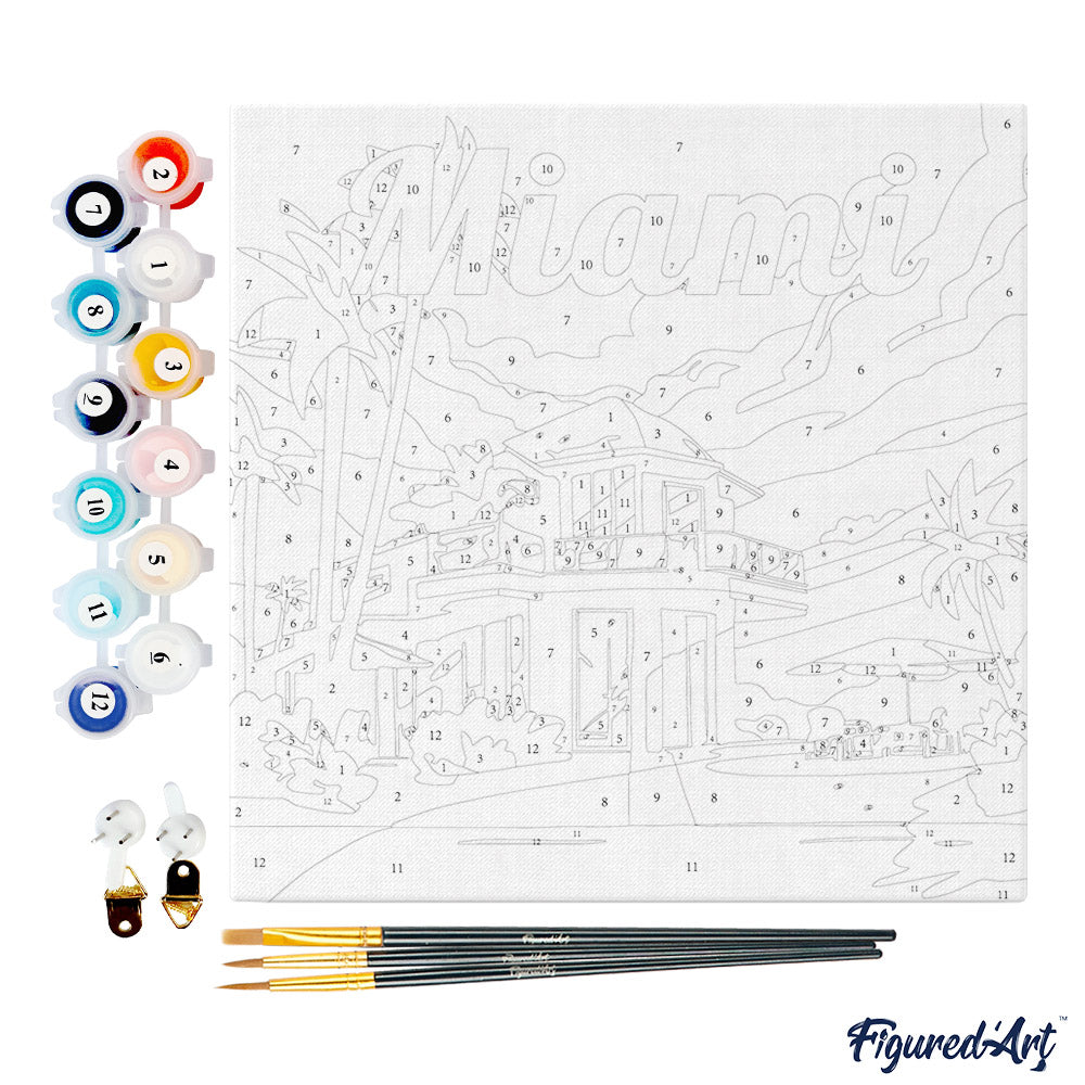 Mini Paint by numbers Travel Poster Miami 20x20cm already framed