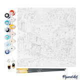 This mini paint by numbers in a 20x20cm format with a wooden frame contains everything necessary to create your masterpiece: